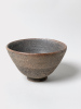 Dieser wilde Ton hat eine wunderschöne Selbstwirksamkeit. Kleine Feldspateinschlüsse blühen weiß aus in den verschiedenen dunklen Schattierungen der Schale. Die am Rand entlang streichenden Flammen verfärbten diesen in ein zartes, gleißendes Englischrot./ This wild clay possesses a wonderful self-efficacy. Small feldspar inclusions bloom in white against the various dark shades of the bowl. The flames brushing along the rim discolored it into a delicate, glistening English Red.